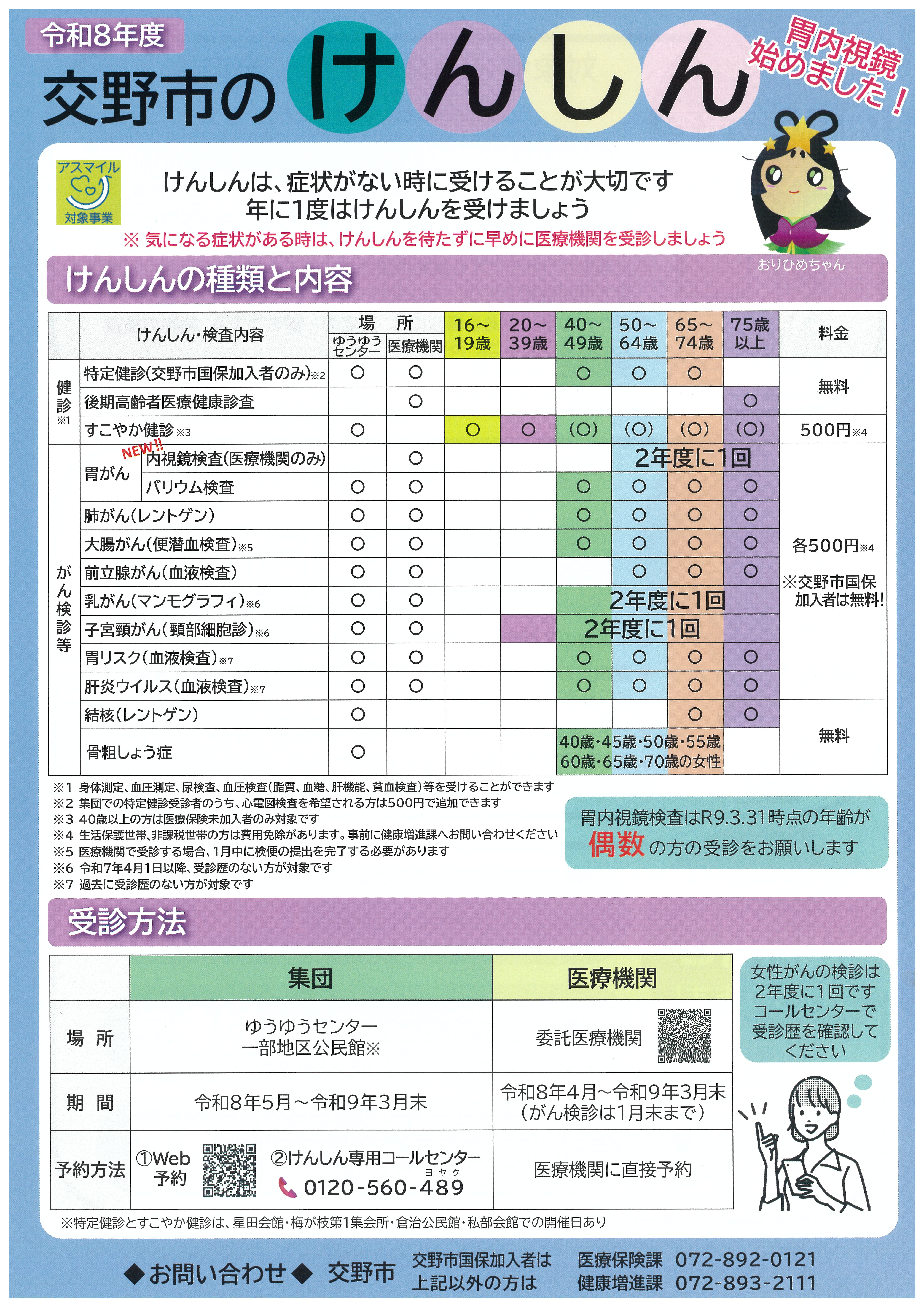 ※ 震災・DV等により、交野市に住民票がなく、居住実態のある方は事前に健康増進課で申請が必要です。必ず受診前にお問い合わせください。