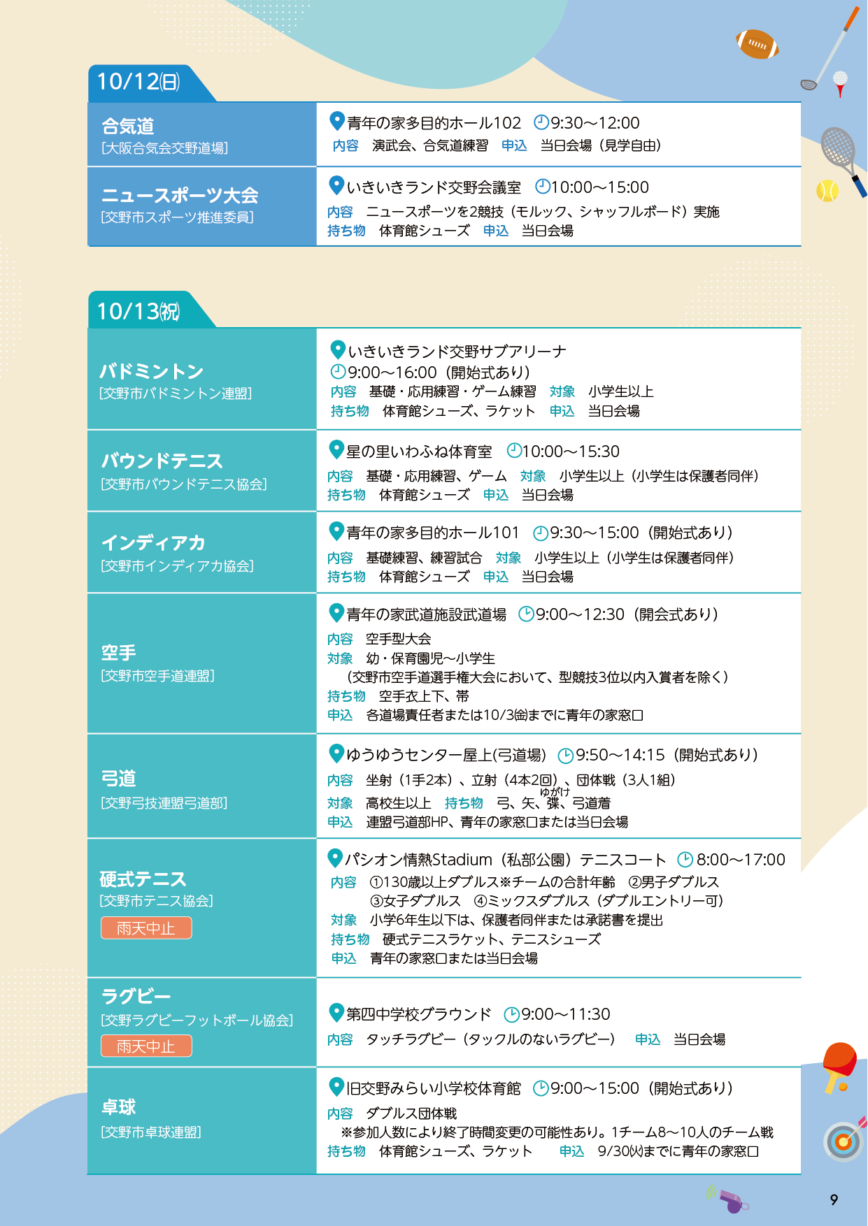 | 主管 | 交野市スポーツ推進委員 | ◯ | |||