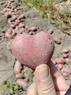 さつまいものような見た目のじゃがいも、かたのルビーの収穫体験。ハート型のかたのルビーを見つけたら、ラッキー! |