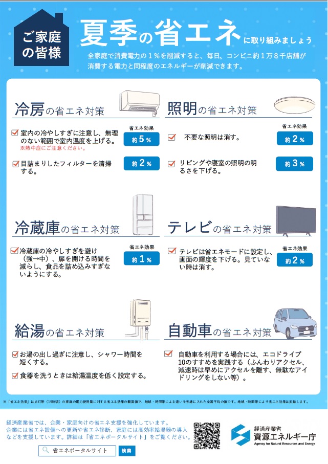 熱中症に注意しつつ、無理のない範囲で省エネに取り組みましょう。