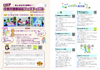※9ページ下部の閉校記念イベントについて、 交野みらい小学校より、11/9(土)開催の閉校 記念イベントの参加対象者が「在校生のみ」に 変更となった旨の連絡がありました。 詳細は、交野みらい小学校HPをご確認ください。 https://fa.fureai-cloud.jp/katanomirai-e/ なお、第一中学校のイベントは、みなさんご参加 いただけます。
