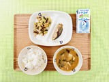 ・ご飯 ・あさりのみそ汁 ・あじの塩焼き ・わかめのごま油炒め ・牛乳 |