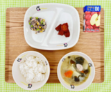・ご飯 ・じゃがいものみそ汁 ・かつおのノルウェー風 ・ひじきサラダ ・りんごジュース |