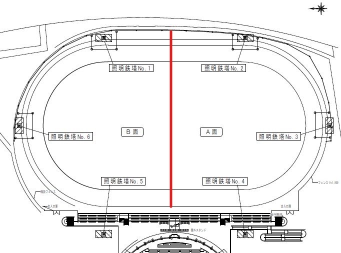 令和7年10月より、既存の全グラウンド照明鉄塔6塔に対して、LED化及び塗装改修工事を行う予定です。