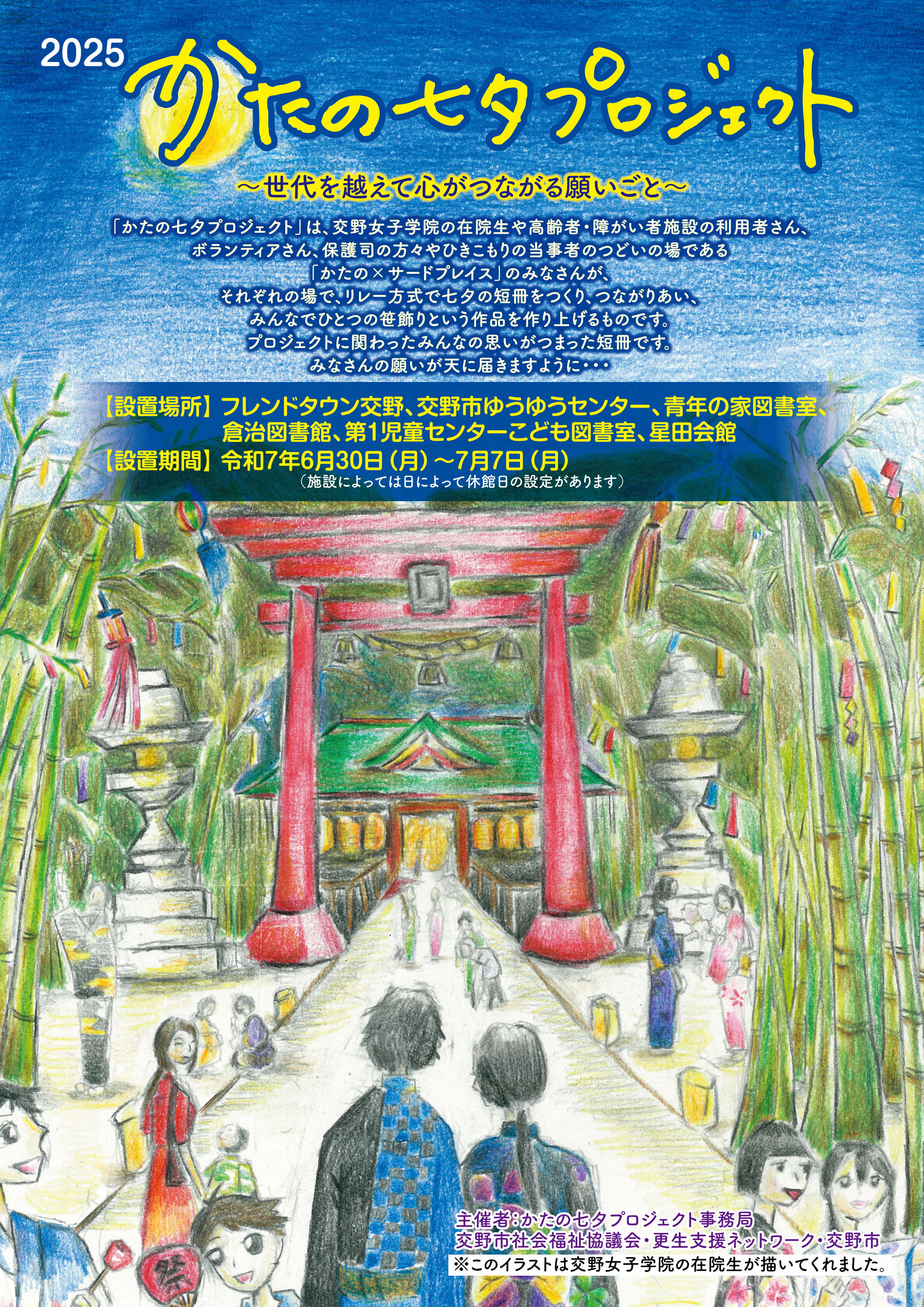 七夕に合わせて、関係機関・団体と協働し、更生支援と世代間交流による生きがいづくりを目的として、「かたの七夕プロジェクト~世代を越えて心がつながる願いごと~」を実施します。