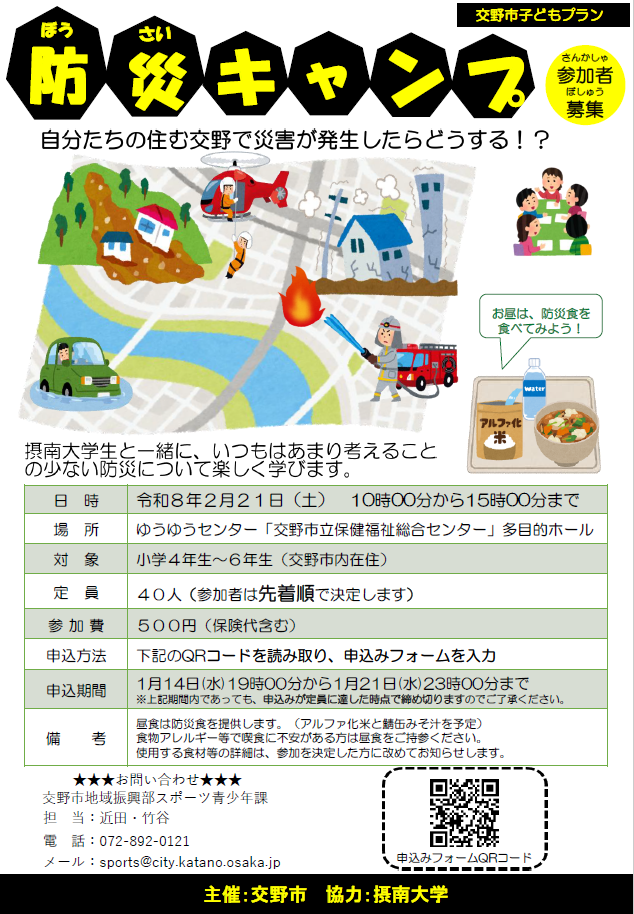 令和7年度 防災キャンプを開催します。(4〜6年生の児童が対象)