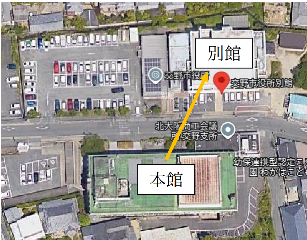 住所:大阪府交野市私部1丁目1番1号 交野市役所別館(1階・3階)