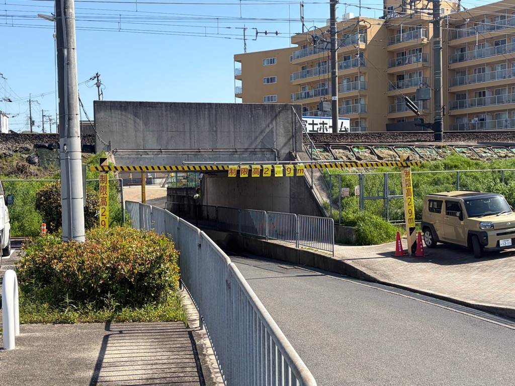 現在、通行可能ですが、2.9mの高さ表示バーがないため、自車の高さを確認の上ご通行ください。